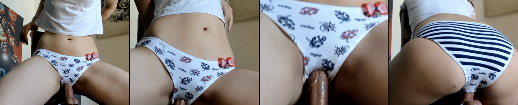 Penetration through panties - real and/or dildo; Sometimes taboo themed. (Approximately 25 videos, 18gb)